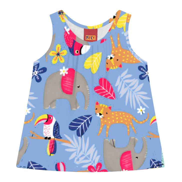 O Conjunto Feminino Kyly Azul Selva é a escolha perfeita para as pequenas se aventurarem com estilo e conforto! Composto por uma Regata estampada leve e um Shortinhos pink, esse conjunto traz uma estampa tropical super divertida que vai deixar sua filha radiante. A blusa tem um corte solto e confortável, ideal para brincar, enquanto o shorts possui cós elástico, garantindo liberdade nos movimentos.