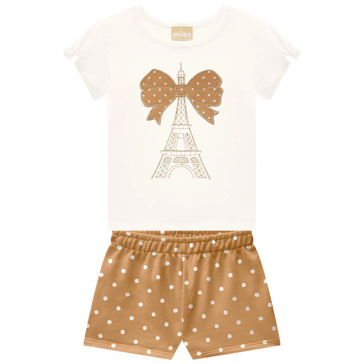 O conjunto infantil menina Milon combina conforto, estilo e um toque de romantismo inspirado na beleza de Paris. A blusa é confeccionada em cotton 95% algodão e 5% elastano, proporcionando um caimento ajustado e extremamente confortável. Sua modelagem reta e delicada é valorizada por um bordado encantador que traz a icônica Torre Eiffel adornada por um laço de poá em destaque. As mangas com leve franzido e acabamento delicado completam o visual com feminilidade e charme.