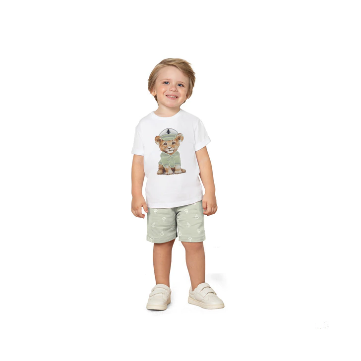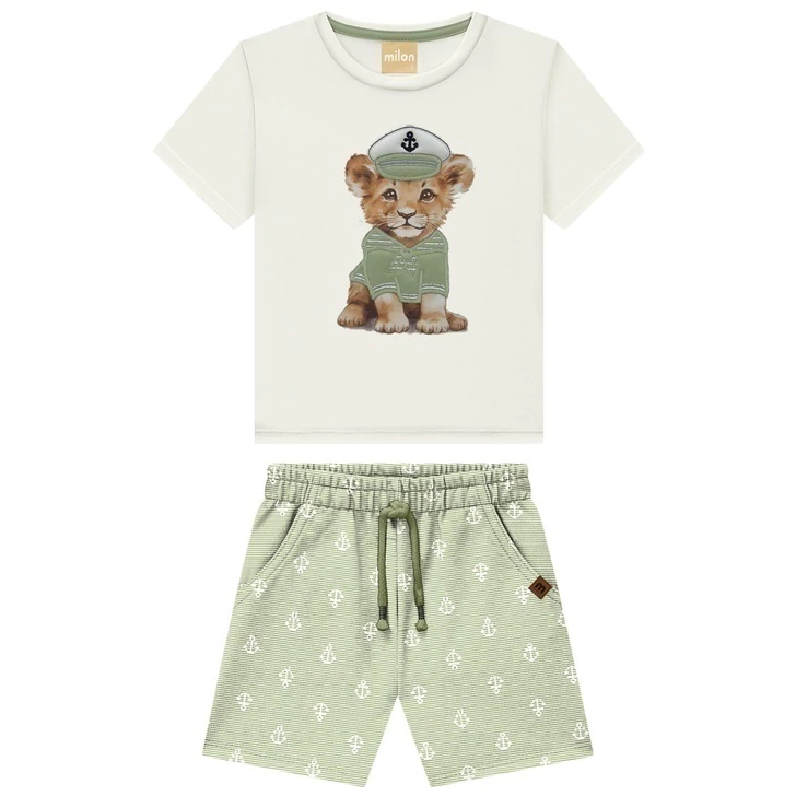 Um toque de fofura em alto-mar! O conjunto infantil menino Milon traz o encanto do tema marinheiro com o charme irresistível do leãozinho capitão — uma combinação perfeita de conforto e estilo para os pequenos aventureiros. A camiseta, confeccionada em meia malha 100% algodão, possui toque macio e caimento leve, ideal para acompanhar o ritmo alegre das brincadeiras. Sua modelagem tradicional garante conforto e liberdade de movimento, enquanto o destaque fica por conta do bordado de leãozinho marinheiro, que encanta com seu look náutico e detalhes delicados que refletem o cuidado Milon em cada peça.