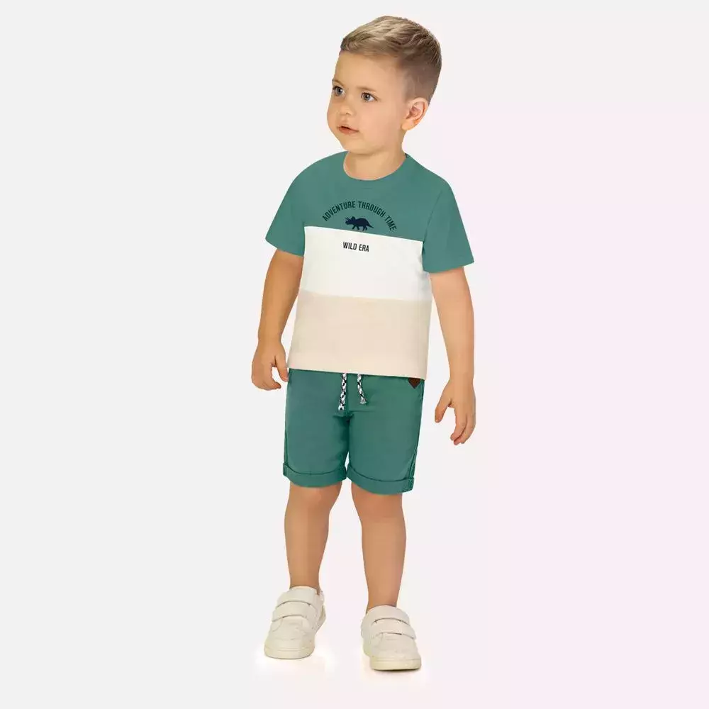 Com um visual moderno e cheio de personalidade, o conjunto infantil menino Milon é a escolha perfeita para os pequenos que adoram aventuras com muito estilo e conforto. A camiseta é confeccionada em meia malha 100% algodão, com toque macio, caimento leve e excelente respirabilidade para os dias mais ativos da infância. Sua modelagem reta tradicional favorece a liberdade de movimento, enquanto o design em blocos de cor confere um ar contemporâneo e despojado. O destaque fica para a estampa localizada com lettering e ilustração de um dinossauro, que trazem charme lúdico à composição e despertam o interesse dos pequenos por aventuras pré-históricas.