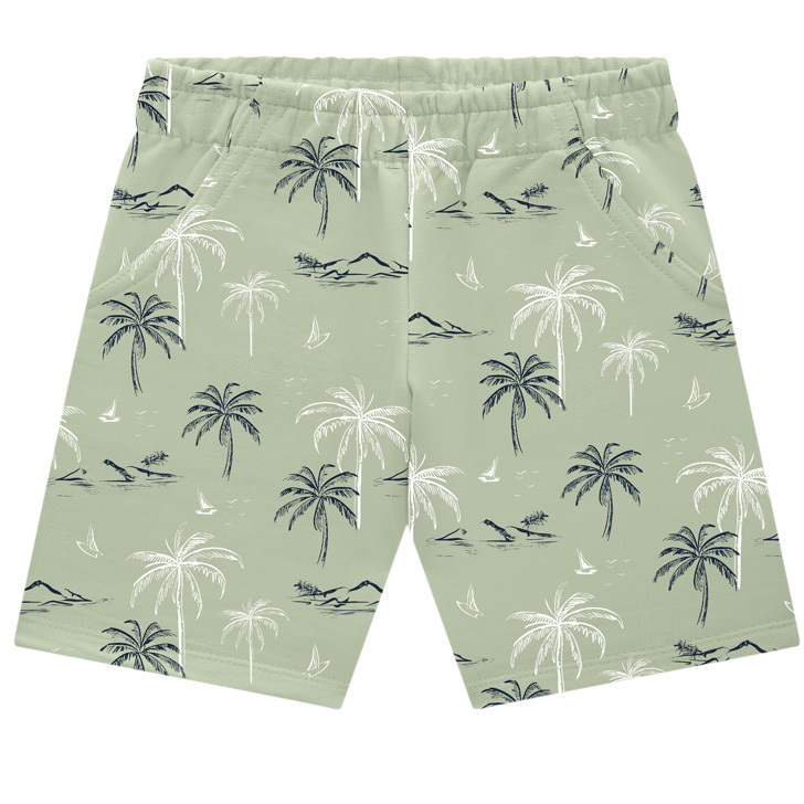 A camiseta, confeccionada em meia malha 100% algodão, possui um tecido suave e respirável, proporcionando o máximo de conforto e liberdade de movimento, para que as crianças possam brincar e se divertir sem restrições. Sua estampa vibrante traz uma paisagem de praia com Prancha e palmeiras, que tras personalidade e charme à peça, tornando-a ainda mais especial. A bermuda, feita em moletom 100% algodão sem felpa, é superconfortável e versátil, perfeita para o verão. Com uma estampa rotativa de listas e palmeiras, ela traz um toque de frescor e estilo. O elástico na cintura garante um ajuste confortável, proporcionando praticidade para o dia a dia.