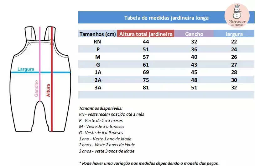 A recomendação é comprar o tamanho das roupinhas que já vestem bem o seu filho(a).