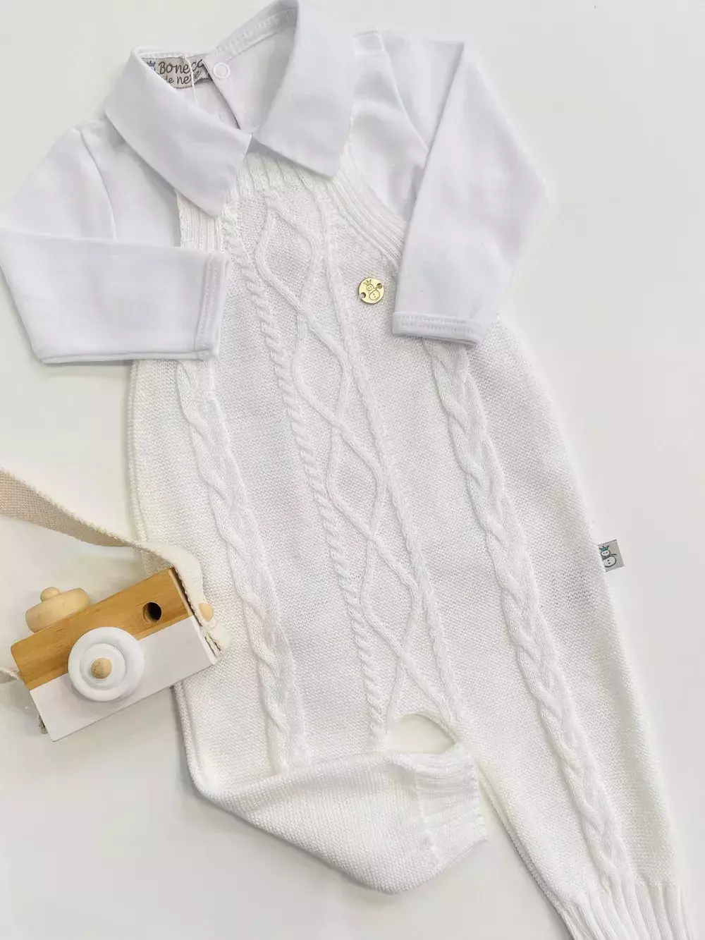 Jardineira Branca de tricot antialérgico bebê e infantil jardineira Rubi longa branco
