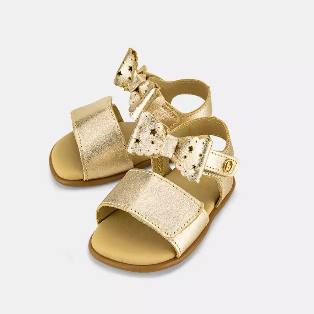 Descubra a sandália infantil feminina perfeita para o seu bebê! Confeccionada em couro metalizado dourado, ela é deal para todas as ocasiões!